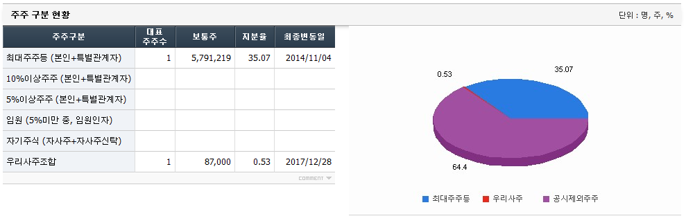 동사의 최대주주는 배종식 대표이사로 동사의 지분 34.8%를 보유하고 있으며,