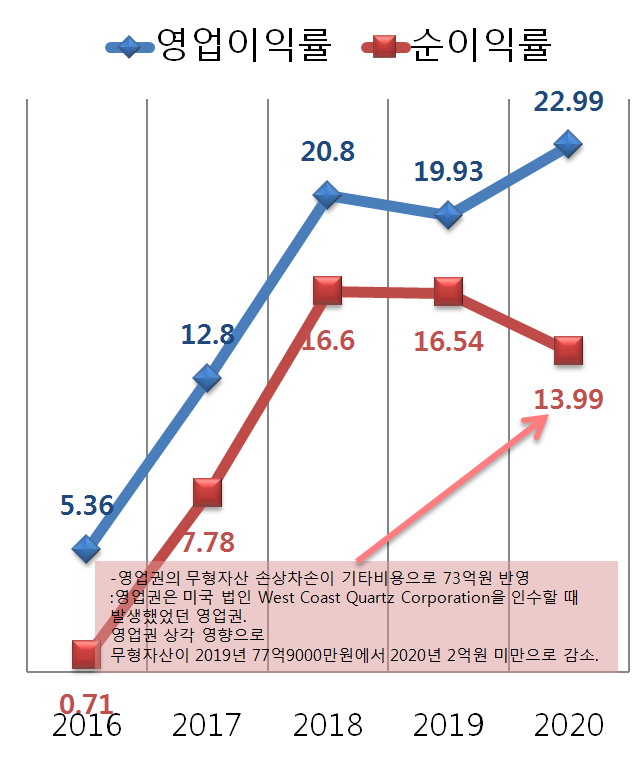 미국 법인 West Coast Quartz Corporation을 인수할 때 발생했었던 영업권을