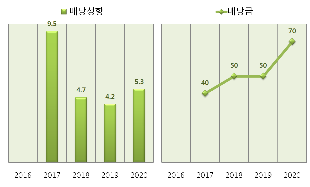 영업이익률이 10%가 넘은 2017년 후로부터는 배당금을 지급하기 시작했더라구요.