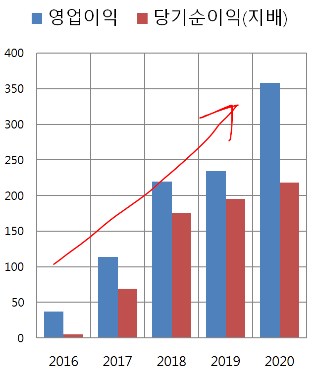 회사가 실제로도 돈을 잘 벌고 있는지 영업이익과 당기순이익을 보도록 하죠^~^