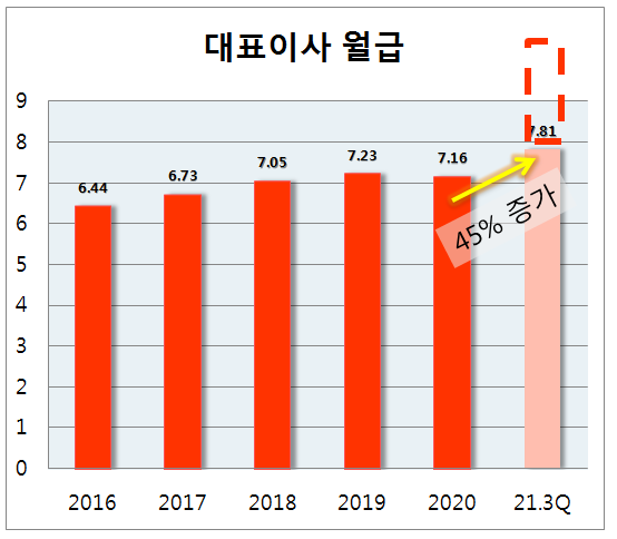 한편 회장님은 올해 본인 월급을 45%나 올리셨습니다.