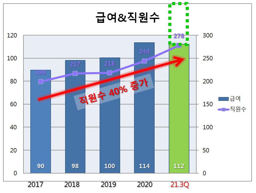 3) 직원수 점진적으로 늘어나는 중.