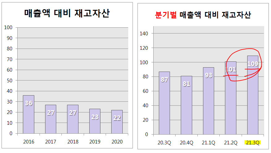 그런데 재고자산이 계속 늘고 있더라구요?