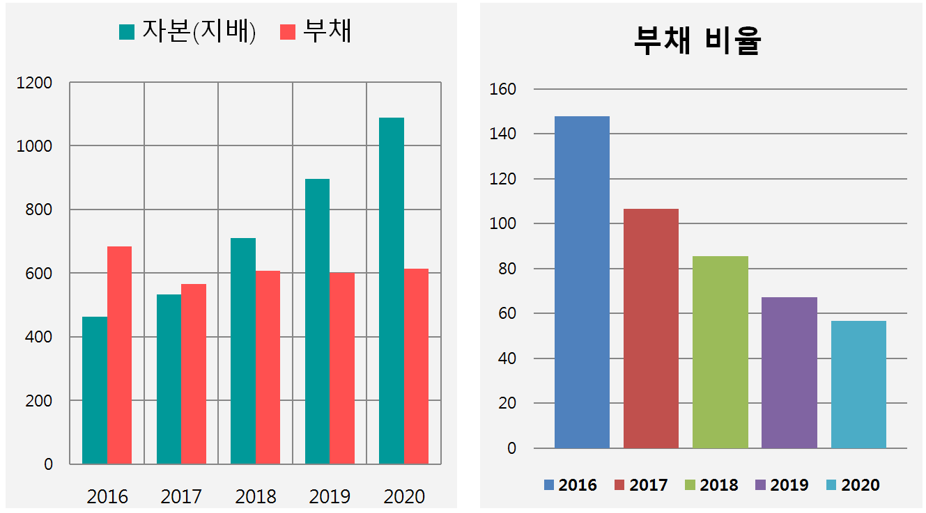 부채비율 51.3%, 유동비율 257%이며