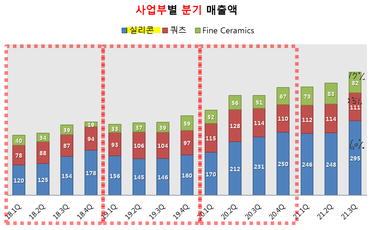 전년 동기(20.3Q) 대비 실리콘이 28%, 파인세라믹이 무려 61%나 성장했더라구요.