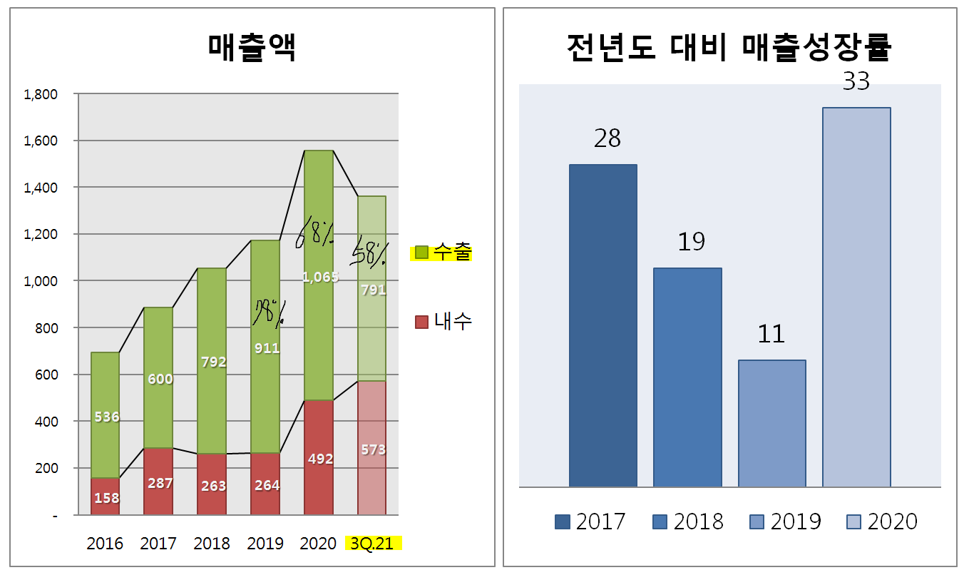 수출 주력 기업으로 최근 5년간 매출액 성장률 10% 이상을 기록하고 있습니다.
