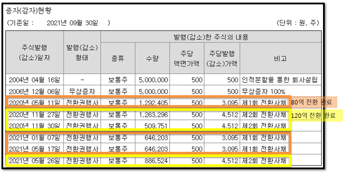 발행된 전환사채 청구권은 모두 행사가 된 상태.