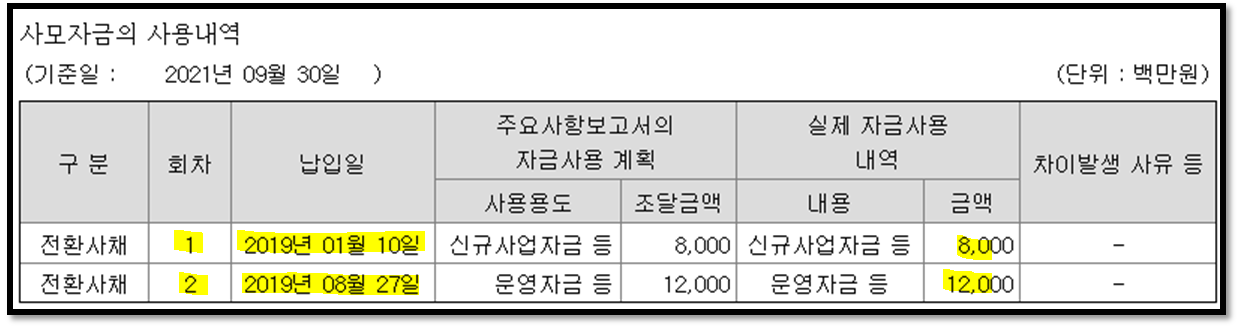 2019년에 전환사채(CB)발행을 해서