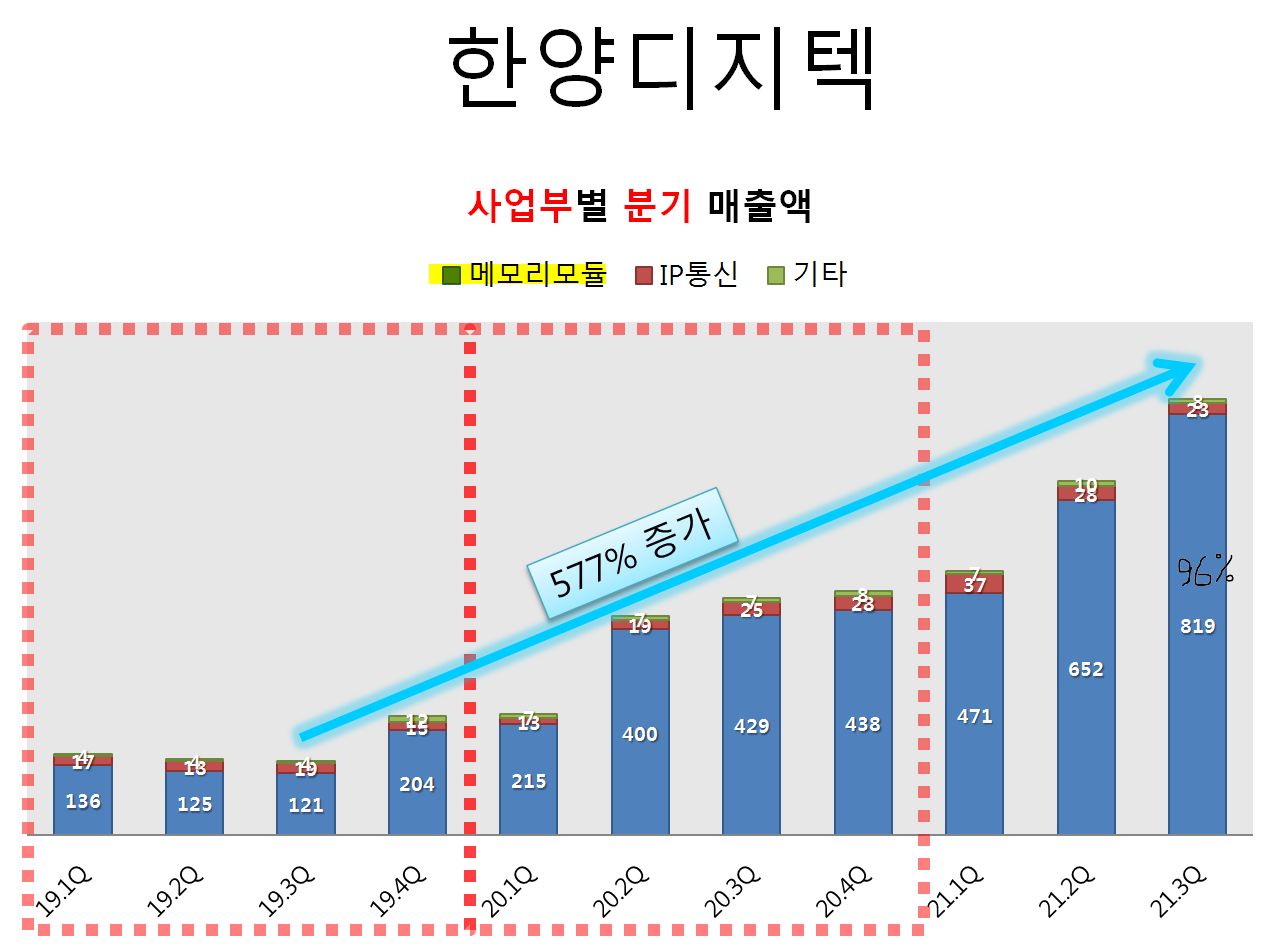서버 및 PC용 노트북에 사용되는 메모리모듈 819억원(96%),