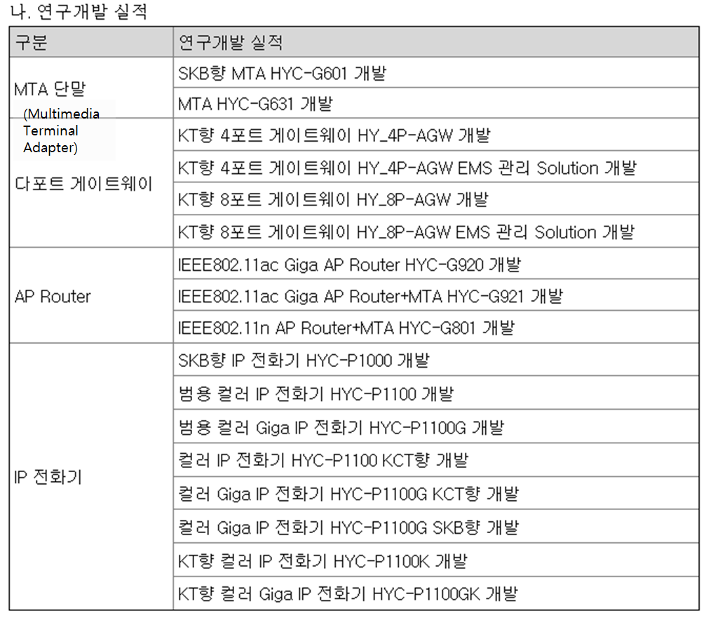 부가적으로 VoIP(Voice Over Internet Protocol) 장비 관련 사업을 하고 있습니다.
