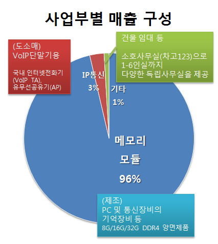 반도체 메모리 모듈(DRAM Memory Module) 제조를 주 사업으로 영위하고 있으며