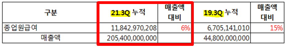 고정비 중 하나인 인건비가 크게 개선되는 바람에 동사의 수익성이 좋아져버렸습니다.