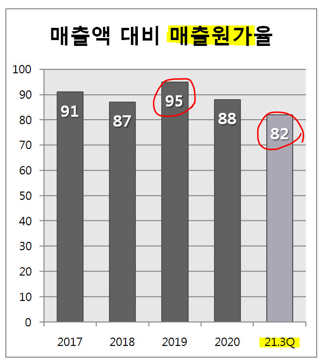 그 이유는 매출액 대비 매출원가가 너무 높았기 때문이죠.