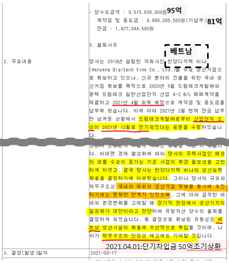 2) 베트남 법인에 생산기지를 늘릴 계획이 있음.