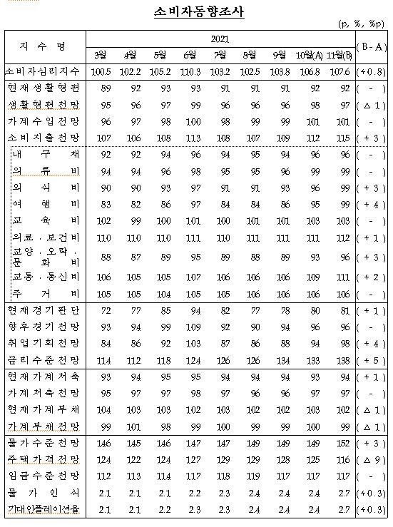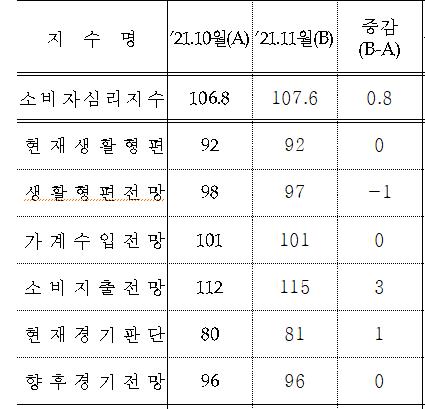 미래의 소비지출 계획 등에 조목조목 설문조사하여 그 결과를 지수화한 것입니다.
