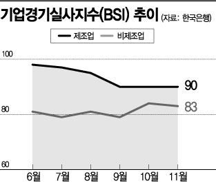 조사대상을 기업가로 하는 기업경기실사지수(BSI; Business Survey Index)와