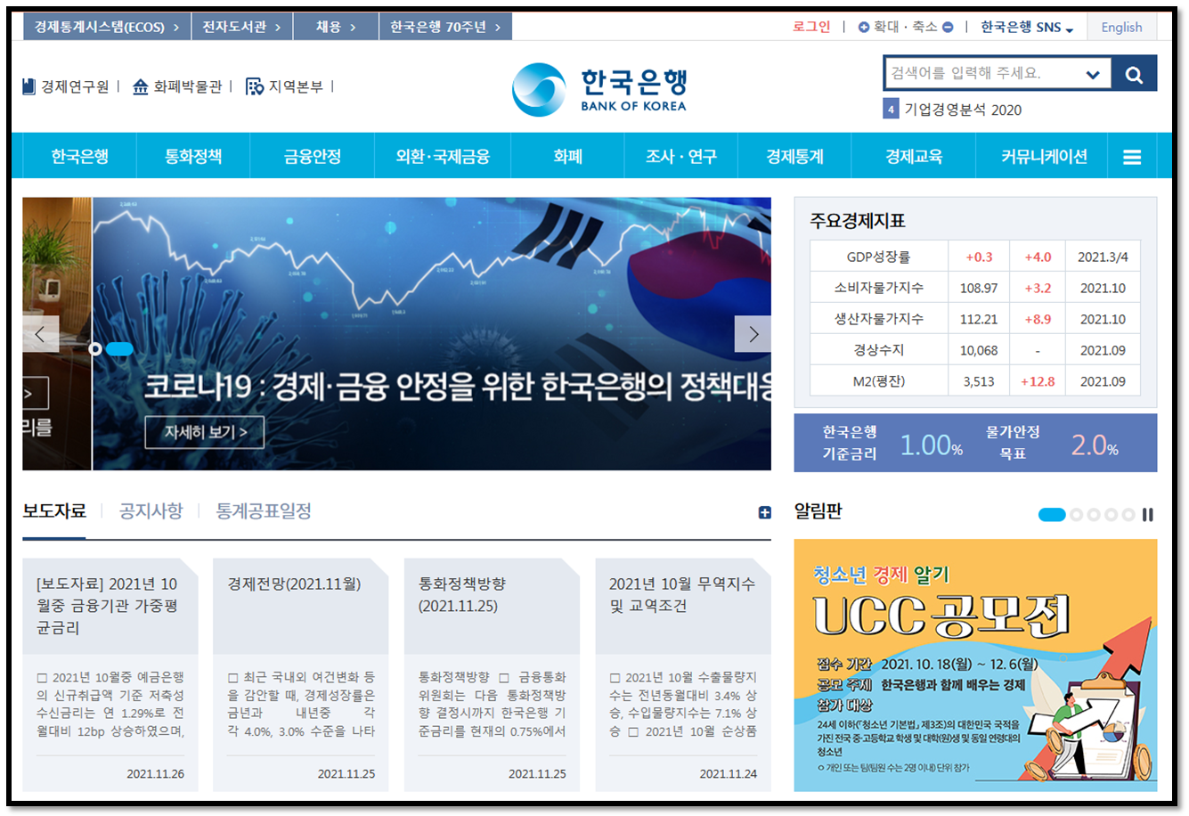 ①한국은행 사이트에 접속합니다.