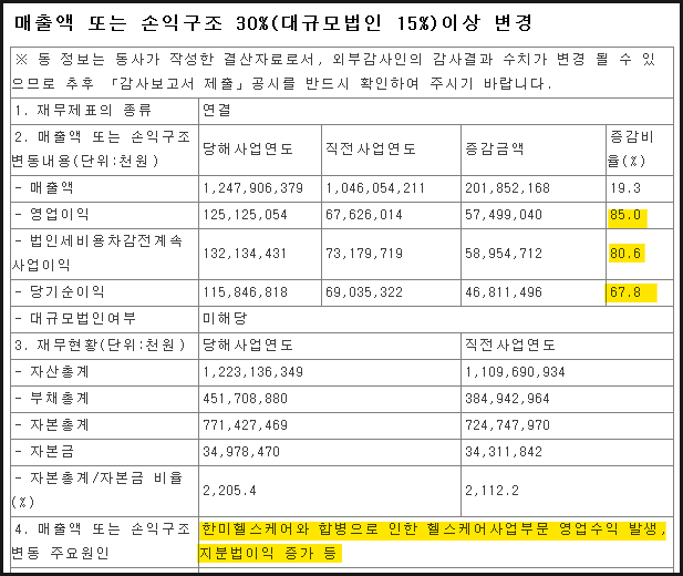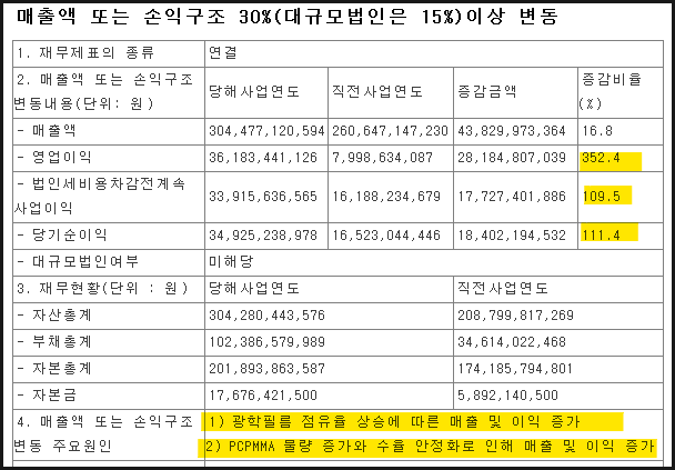| △ 공시변경 | 이미 공시했던 내용 중 금액과 비율 등이 크게 바뀌었을 경우 |