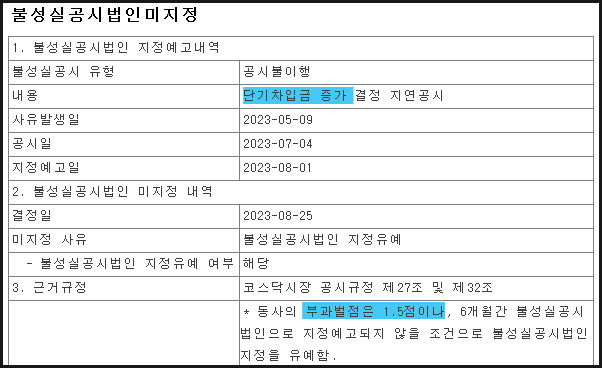 하루 이틀 정도 공시를 늦게 발표하는 공시불이행 때문인 거라