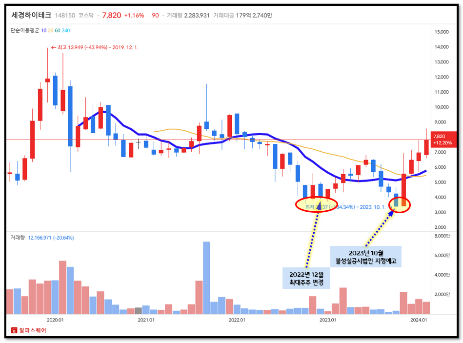2024/01/24 신주발행금지가처분 소송 피소 속 하락